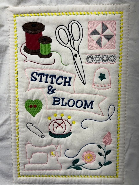 A test block for my upcoming SAL, Stitch & Bloom. It looks a little wonky but it really is square. I digitized this block and stitched it out and found several places to improve on. My plan is to provide blocks that can be appliqued or stitched on an embroidery machine.